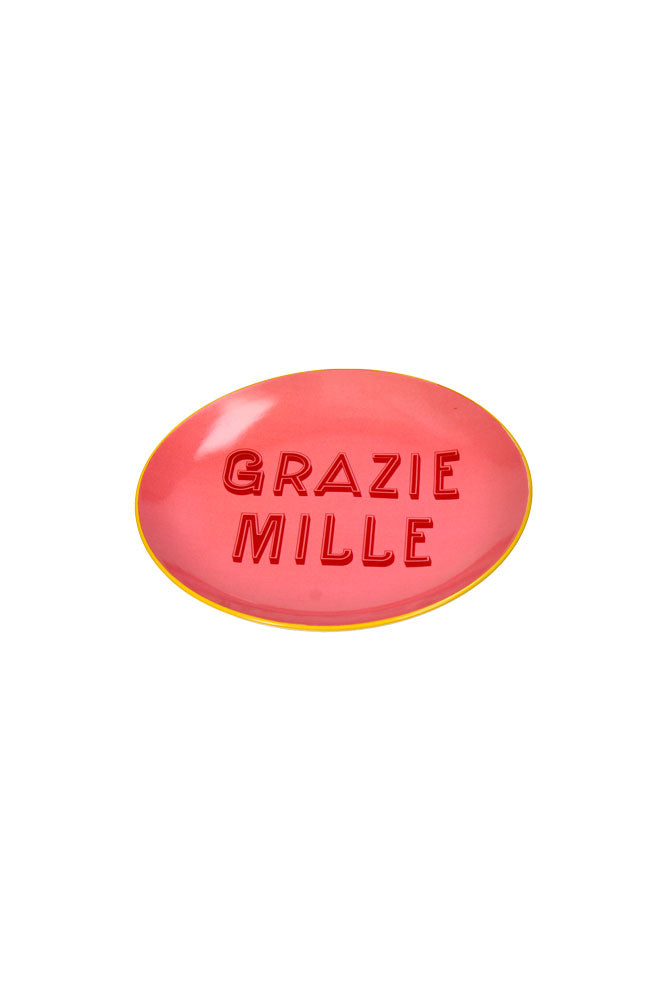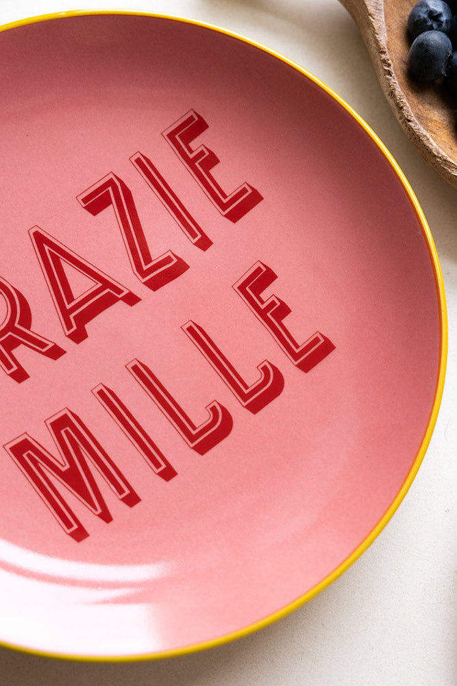 This hot pink ceramic plate is a gloriously cheery addition to every mealtime, especially as the more you eat, the more of this super-sweet message (‘grazie mille’, or ‘thank you very much’) is on show for your host, letting them know just how much you appreciate their hospitality. Finished with a sunny yellow rim to create a delightful contrast to the pink, this brightens up your table a treat and adds a touch of warmth to your décor. Lots of fun and full of personality, this will put a smile on everyone's face, whether you’re serving up a tasty snack or simply using it as a decorative piece. Give yourself a chance to say 'grazie mille’ when this adorable plate arrives at your door!