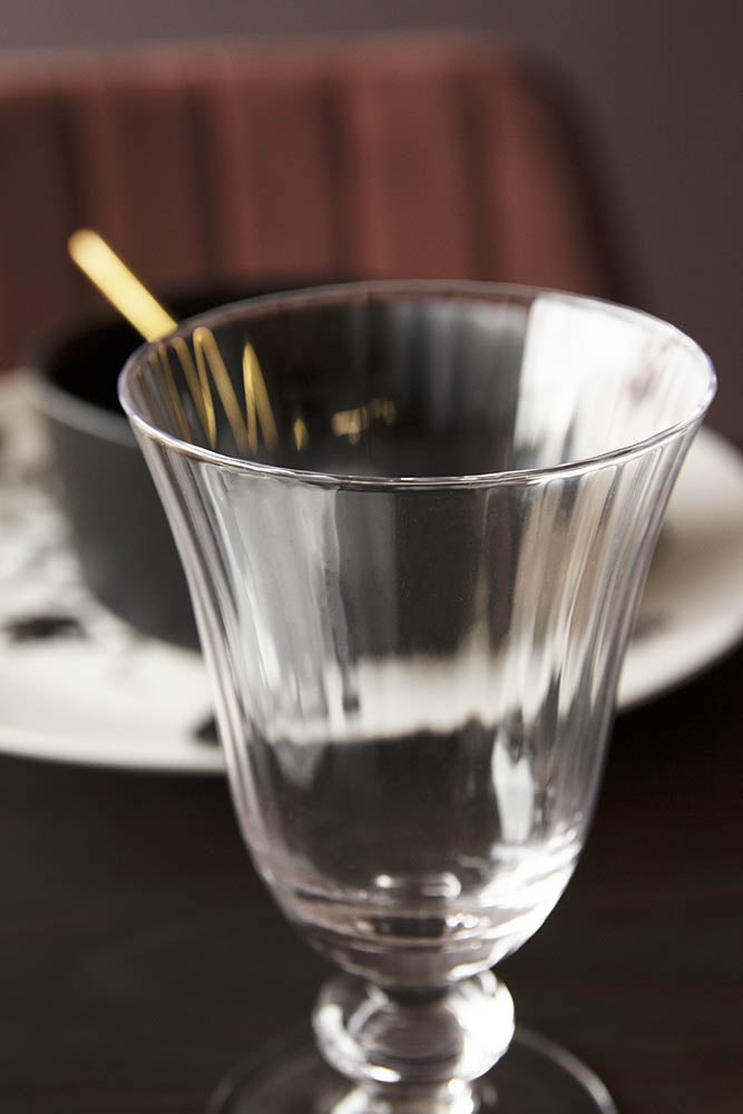 Sold in a set of 6, the glasses feature a short stem and large ribbed glass top. Each glass measures 14cm in height x 9cm in diameter.