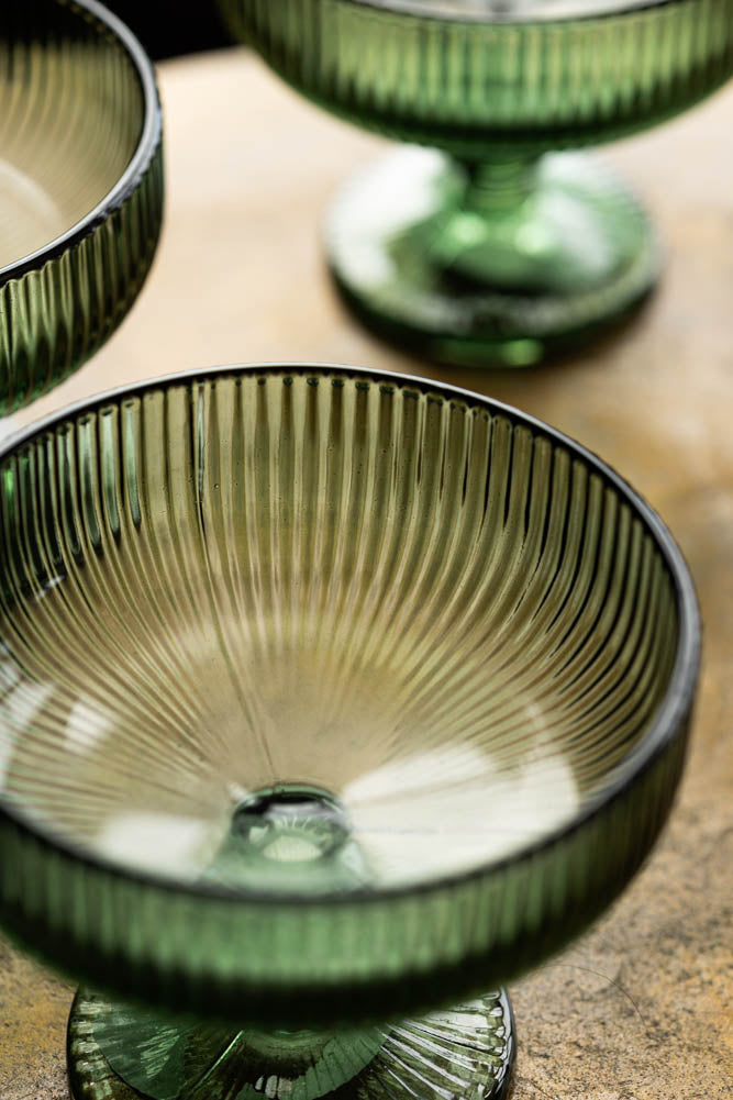 Our Vintage Style Green Champagne Glass is the perfect blend of sophistication and earthy elegance. Boasting a deep, khaki green hue, this coupe glass has a timeless charm that elevates any occasion. The ribbed design adds a beautiful tactile element, making these the perfect glasses with which to toast special moments. Just gorgeous.