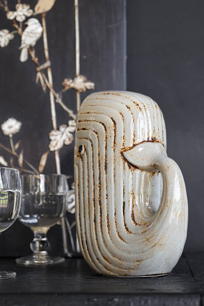 Serving your dinner party guests in style, this large water jug will never fail to impress as the centrepiece of your table from morning to night. This natural grey and white jug would also look stunning as part of an eclectic display from your sideboard, to kitchen shelf or console table. The styling opportunities are endless!