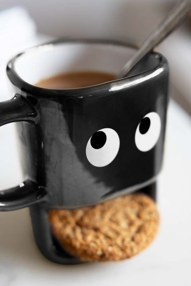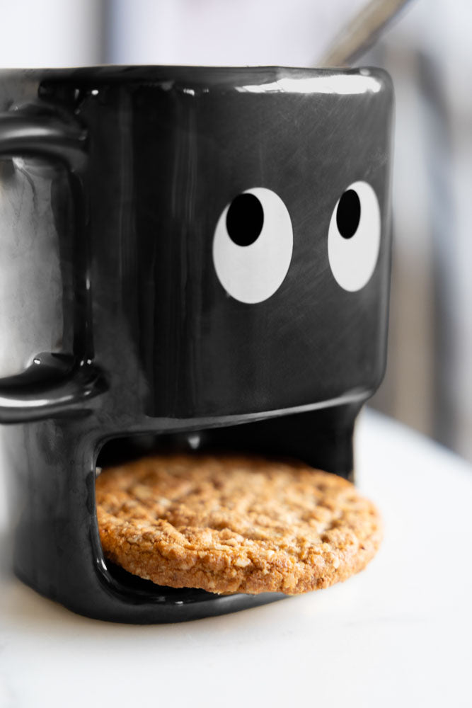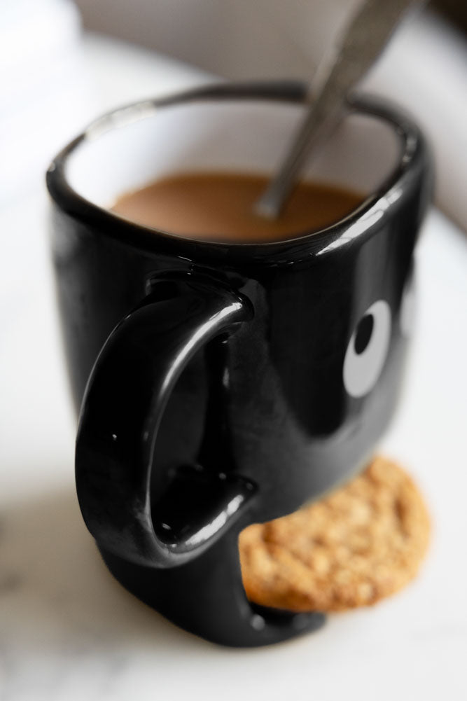 Meet the mug that looks dark and dramatic… until you notice its googly-eyed expression and secret cookie compartment, and suddenly, it’s the silliest thing ever. This novelty tea or coffee mug is the ultimate juxtaposition of cool and quirky – like a brooding villain who secretly loves dunking biscuits in milk. The sleek black finish gives it an air of mystery, but don’t be fooled – this mug is here for fun, snacks and zero seriousness. That wide “mouth”? It’s actually a built-in biscuit hideaway, because let’s be honest, life is so much better when your treats are within closer reach. Dramatic yet delightful, stylish yet silly – this is the cookie mug your coffee break has been waiting for.