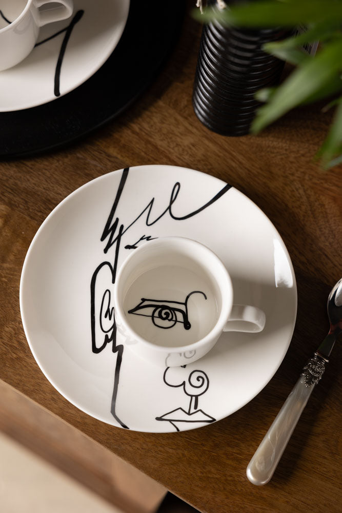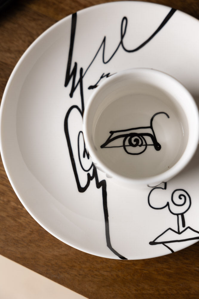 Let your morning coffee take on an added dimension with this clever design – place the cup in the saucer and what do you see? Boyish good looks staring back at you, perhaps? We love how this seemingly disjointed design comes together when all the pieces fit, and the modern, contemporary feel this adds to your kitchen. Clean black lines pop against the bright white porcelain, while the hand-painted graphic look and feel adds a touch of artistry. It’s a piece that makes every hot drink feel that little bit more special, and for that, it definitely earns pride of place.
