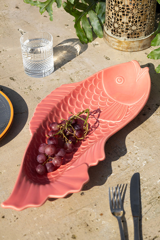 Make a splash at your next dinner party with the gorgeous Fish-Shaped Ceramic Serving Dish. In a stunning coral pink hue, this serving dish is perfect for serving up tasty nibbles, showcasing your sushi collection, or simply stashing your rings and earrings! Both fun and functional, it is perfect for entertaining or adding a touch of coastal charm to your space. Use it for nuts, olives or even your favourite dipping sauces – or pop it on your dresser as a trinket dish. However you decide to use it, this fishy friend is here to bring style, practicality and heaps of personality to your home. Go on, reel it in before it swims away!
