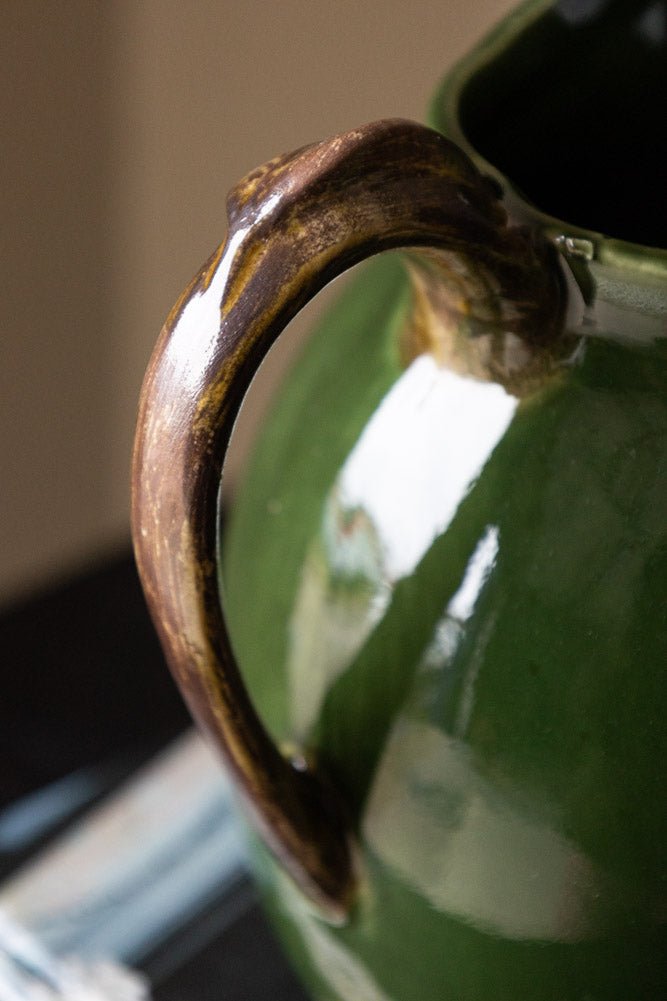 This pretty little jug makes a sweetly stylish addition to your kitchen table or shelves, blending rustic charm with fabulous functionality. The deep olive green glaze perfectly complements the natural brown tones of the handle (which is designed in the shape of a leaf, for extra originality) and works effortlessly with any interior style, from traditional farmhouse to minimalist Scandi. Perfect for milk or cream, this could also double up as an alternative to a gravy boat - the smooth ceramic finish ensures an easy pour, making it the most beautifully practical addition to your kitchen. Alternatively, style with a couple of pretty blooms - add a pop of yellow or pink to your roomscape with seasonal tulips, for example. We adore the earthy, artisan appeal of this piece - a piece of gorgeousness in your very own kitchen.
